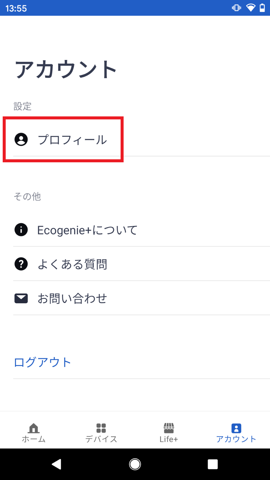 ![]() | 「アカウント」ページの「プロフィール」をタップ。 |