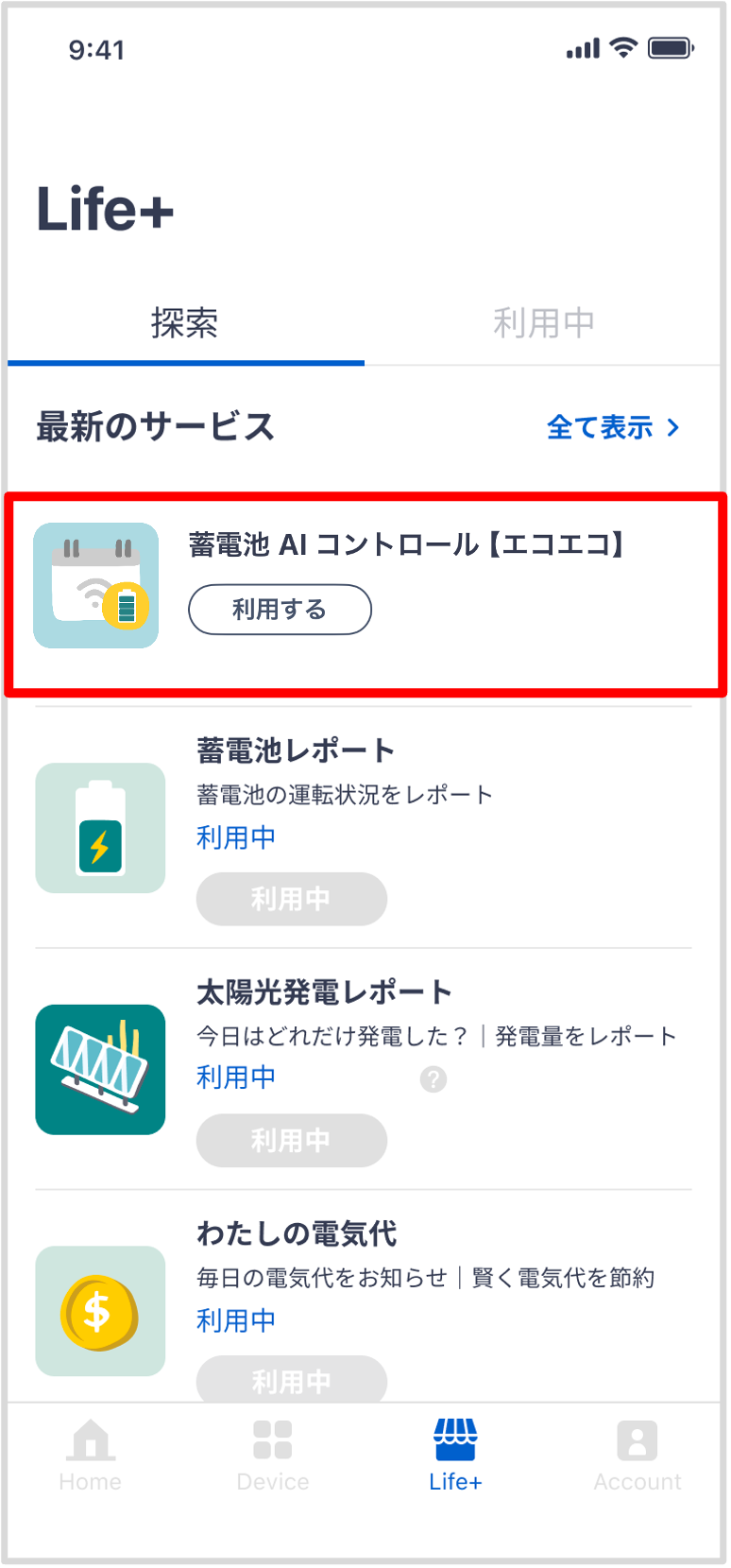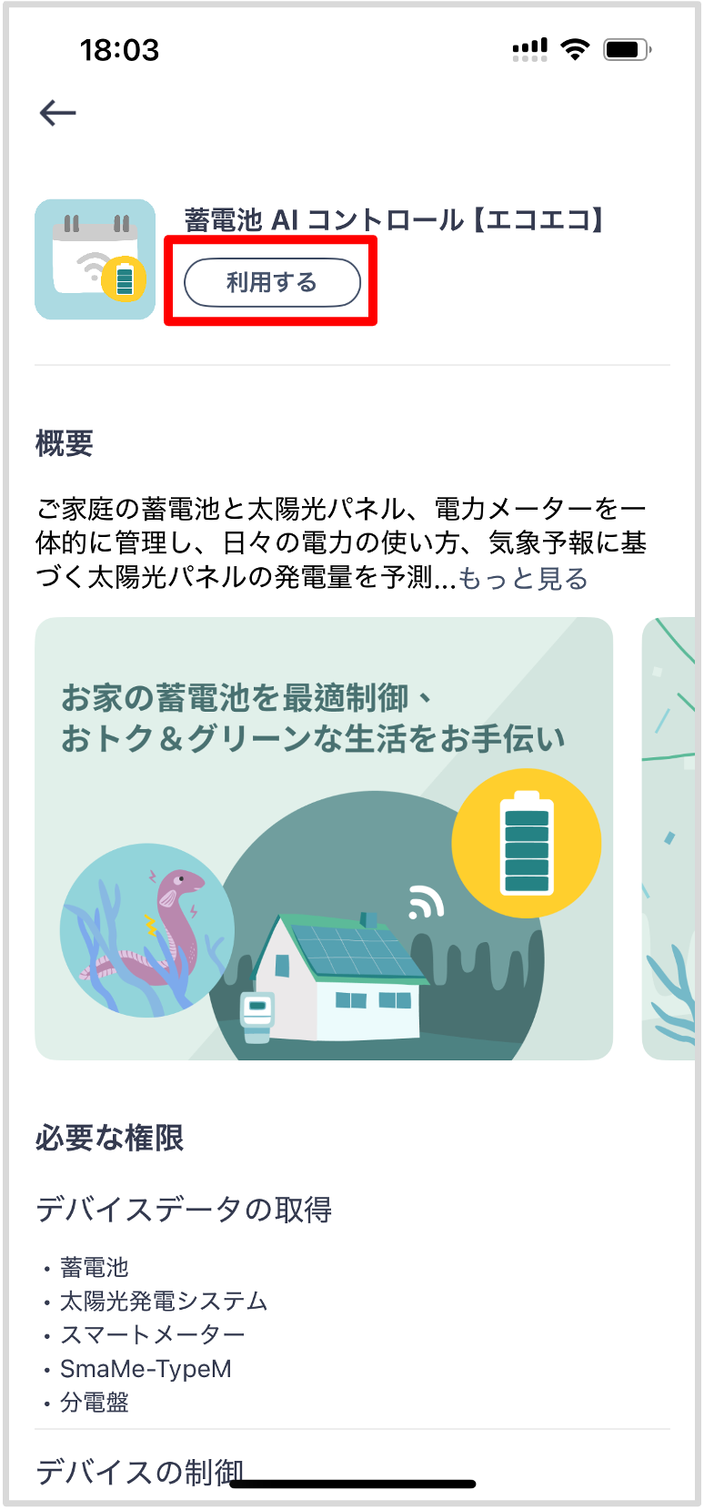 「蓄電池コントロール【エコエコ】」は電力使用状況や天気予報に基づいて発電量を予測し、蓄電池の充放電を自動制御するサービスです。