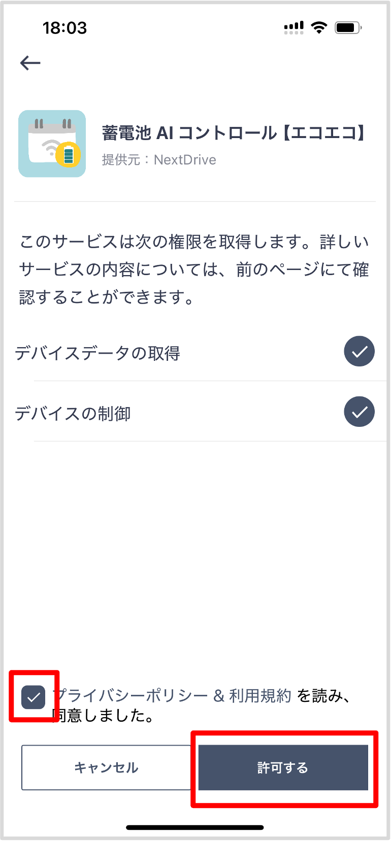 事前にECHONET Lite 機器の蓄電池及び売買電量・発電量を計測する機器と接続する必要があります。